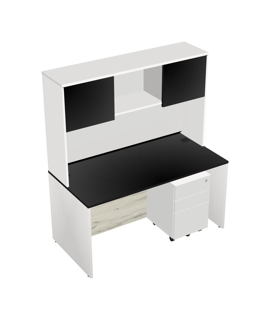 Black Rectangular Office Desk Plus White Wooden Mobile Drawers And White Hutch